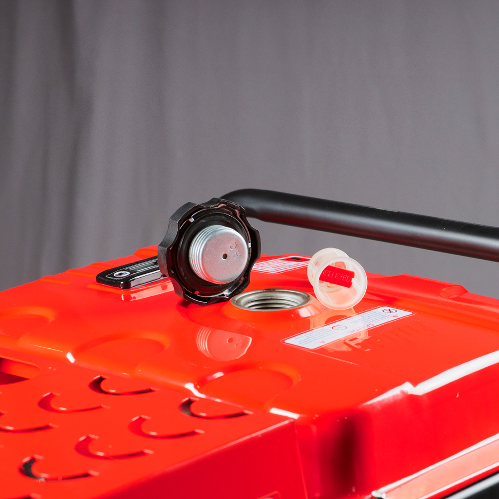 Надежный сварной топливный бак объемом 15,0 л обеспечит до 10,5 часов непрерывной работы без дозаправки. Крышка бака оснащена указателем уровня топлива и фильтром-сеткой.