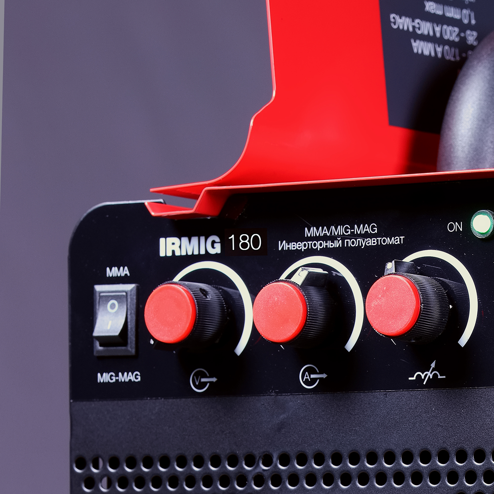 В модельный ряд вошли варианты со сварочным током до 200 А (MIG/MAG). Максимальное значение легко определить по названию модели (например, IRMIG 160 – 160 A). Если захотите купить сварочный полуавтомат irmig 180, обратите внимание на то, что пиковое значение параметра для других режимов сварки может быть меньше 180 А.