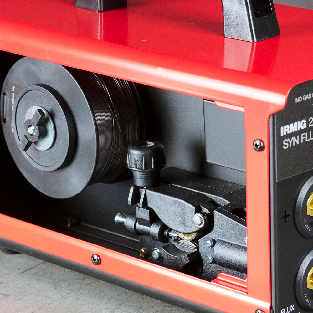 Синергетический полуавтомат для сварки флюсовой проволокой с функциями MMA и TIG lift. Мощный и компактный аппарат для полуавтоматической сварки самозащитной проволокой без газа, ручной дуговой сварки покрытыми электродами (MMA) и аргонодуговой сварки постоянным током с контактным поджигом (TIG LIFT). Идеальное решение для сварки сталей малых и средних толщин в условиях гаража, мастерской и на открытом воздухе, где использование газовых баллонов невозможно или нецелесообразно.