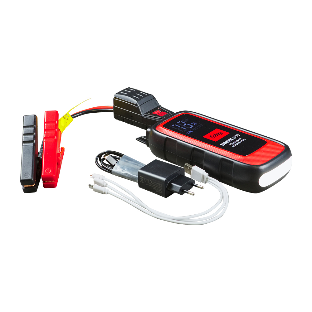 Пусковое устройство FUBAG DRIVE 600 с током запуска 600 А и емкостью аккумулятора 12 000 мАч – профессиональное решение для запуска двигателей объемом до 5 л при разряженном штатном аккумуляторе.