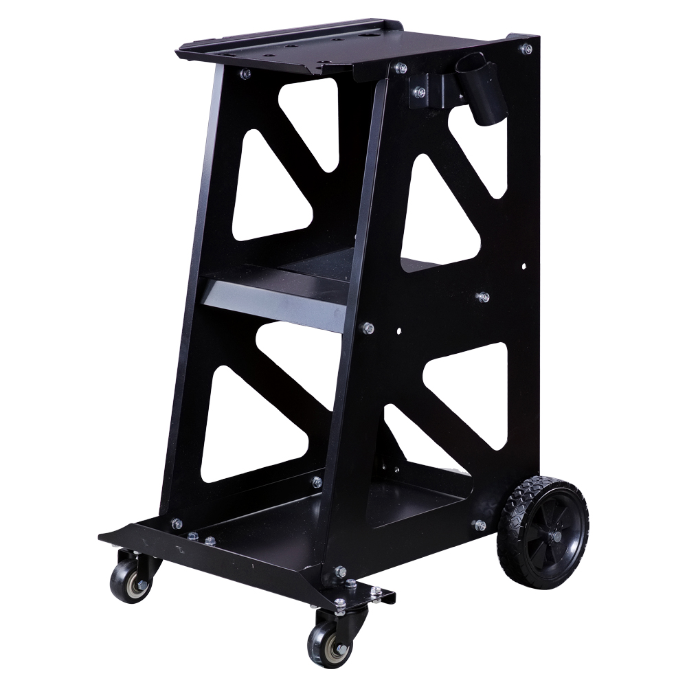 Средняя полка с поперечным углублением предназначена для метизов и инструмента. Нижняя полка с высокими бортиками по периметру предотвращает выпадение деталей. Боковые кронштейны позволяют закрепить сварочный пистолет и два обратных молотка.